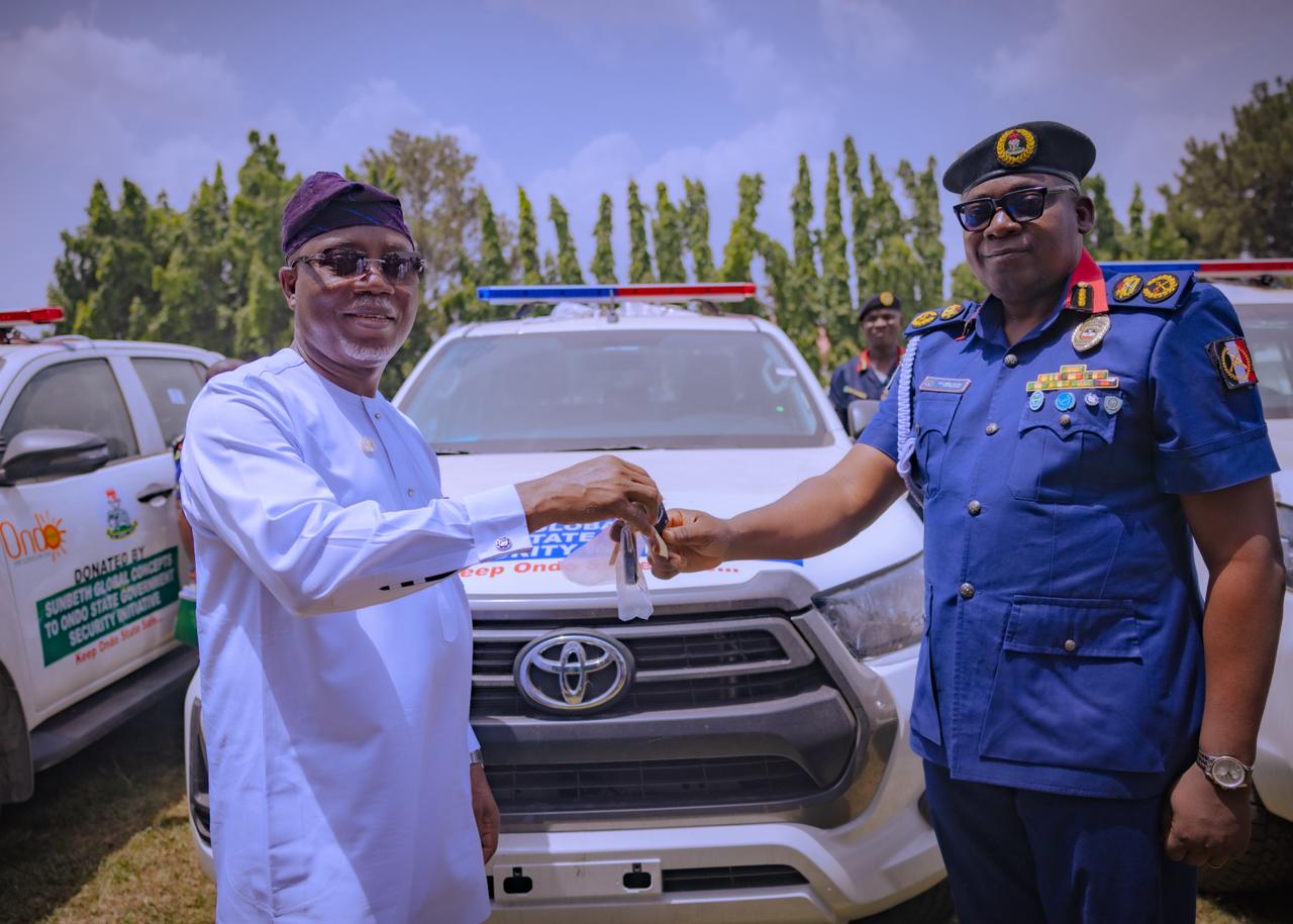 On security, Governor Aiyedatiwa revealed that Sunbeth Global Concept, led by Olasunkanmi Owoeye, had donated 10 Toyota Hilux high-grade vehicles to bolster security operations in the state.