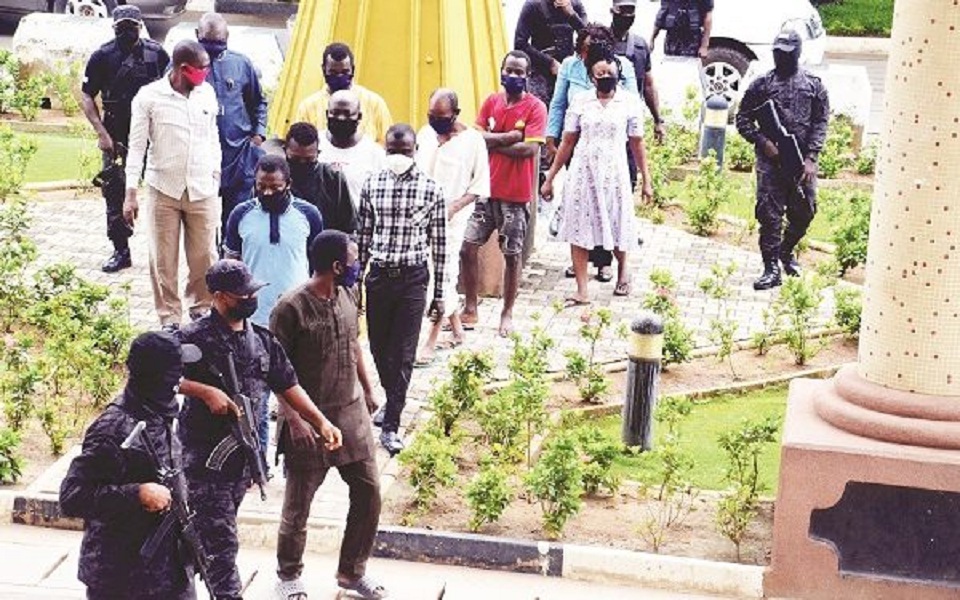 Those brought to court are: Amudat Babatunde (aka Lady K), Tajudeen Erinoye, Diekola Ademola Jubril, Abidemi Shittu, Jamiu Noah Oyetunji, Ayobami Donald, Raji Kazeem and Bamidele Sunday.