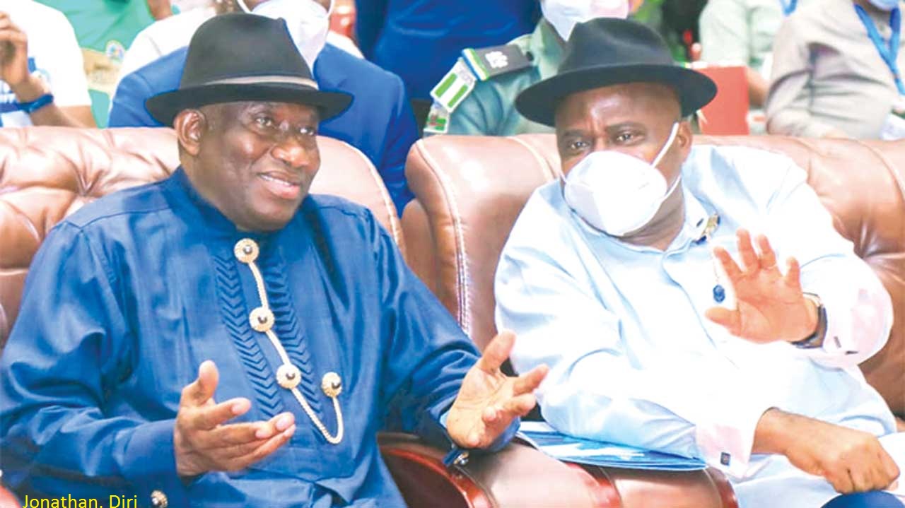 Former President Goodluck Jonathan (left); and Bayelsa State Governor, Douye Diri during the opening of a five-day Education summit by the state Ministry of Education at the Local Content Tower in Yenagoa…yesterday