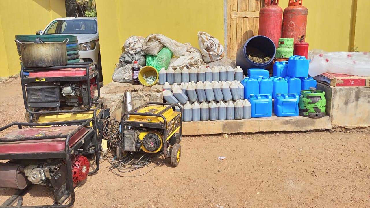 All the equipment for the production including power generators, industrial gas cylinders, drums and kegs as well as various quantities of illicit drugs such as 214kgs cannabis; 1,440 capsules of tramadol; 480 tablets of swinol; 1,440 tablets of Rohypnol and 114 litres of industrial codeine, among others were recovered from the building before sealing off the premises.