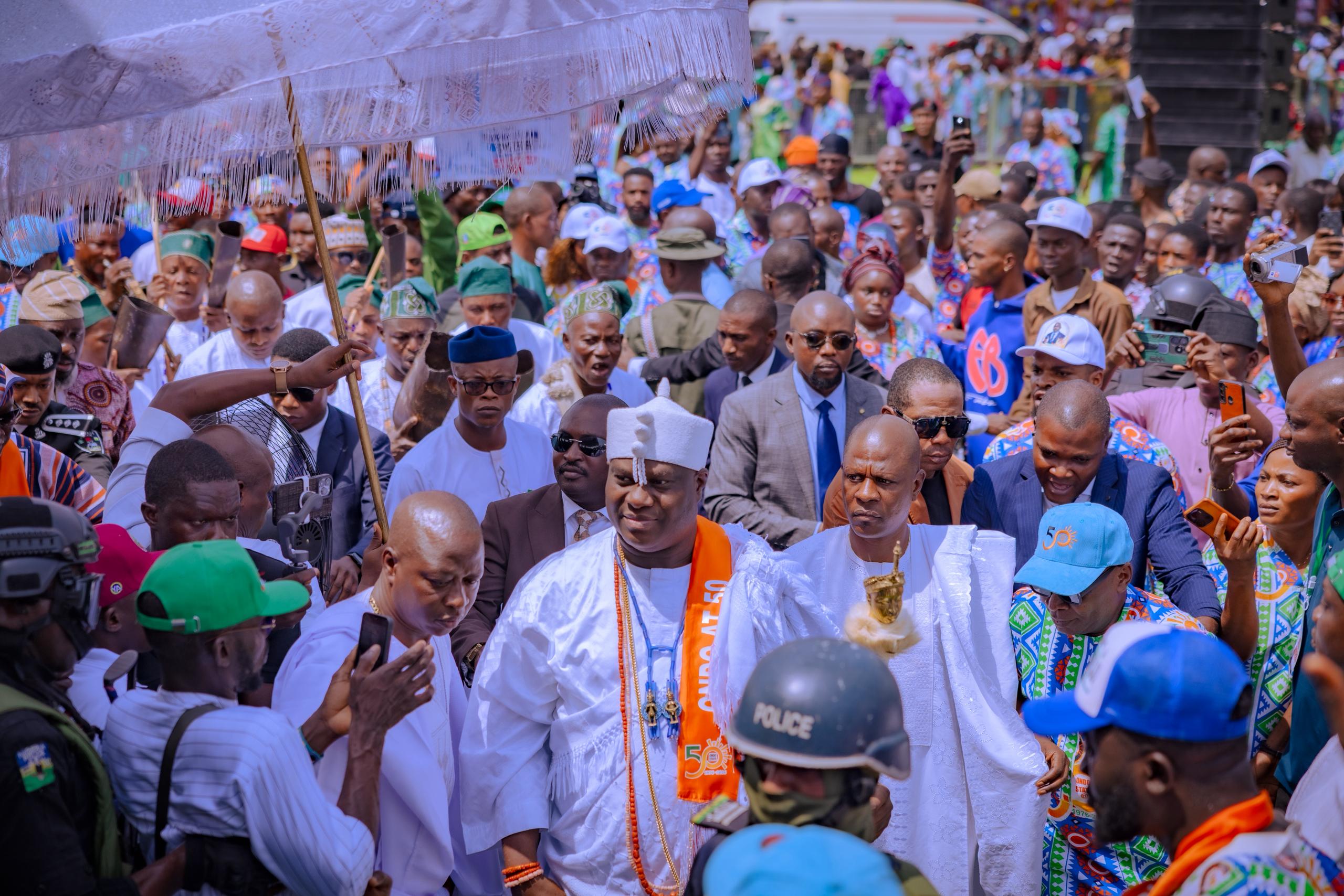 According to him, the jubilee offered an opportunity to honour generations of Ondo indigenes whose contributions had shaped both the state and the nation, paying tribute to founding fathers and mothers, traditional rulers, political leaders, professionals, farmers, artisans, workers and students.