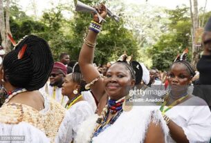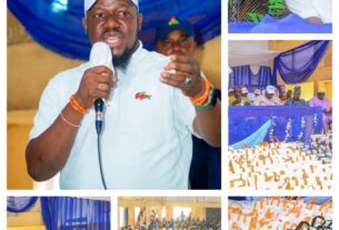 Osun State Governor Adegboyega Oyetola, flanked on both sides by his wife Alhaja Kafayat Oyetola and APC new National Secretary, Senator Iyiola Omisore, welcoming Speaker of the state’s House of Assembly, Rt Hon Timothy Owoeye (2nd right) and the Deputy Majority Leader Hon. Kunle Akande (1st right) at the party’s just concluded National Convention in Abuja on Saturday March 26, 2022