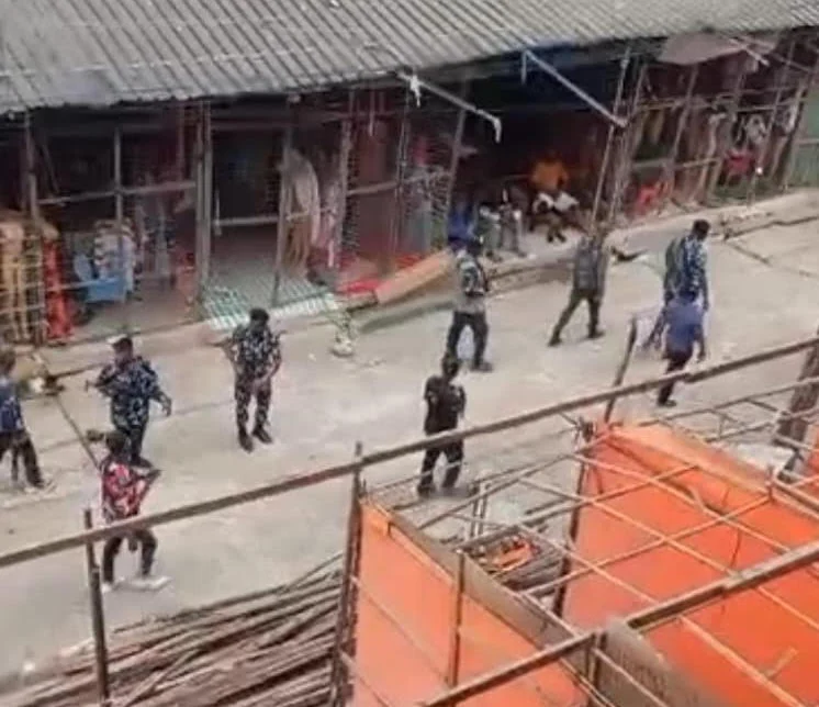 The security personnel prevented anybody from moving into the market premises while the shops remained locked, as traders and other people who had come to do business in the market were seen loitering around, watching the security personnel.