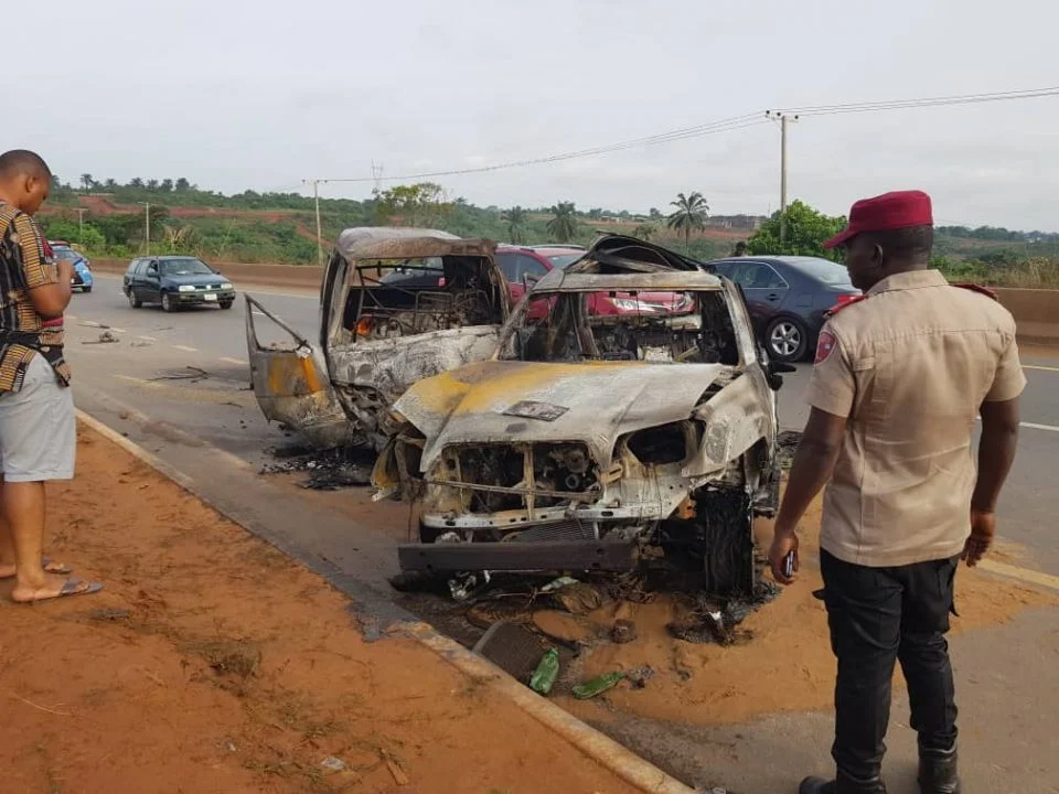 Five persons, including two reverend sisters, a couple and their driver, have been burnt to death in a road crash at Nawfia, along the Awka-Enugu Expressway, Anambra State.
